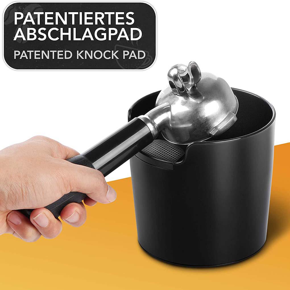 Ada bantalan silikon di ketukan pada tong bubuk kopi untuk melindungi wadah bubuk kopi.