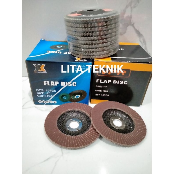 amplas susun atau flap disc ukuran 4 inchi harga per box isi 10pcs bisa campur ukuran