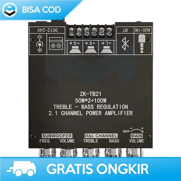 Speaker amplifier DIY ini memiliki fitur koneksi bluetooth 5.0. Dapat menghasilkan output suara 50 W left channel, 50 W right channel dan bass 100 W dengan input tenaga 12-24 V. Amplifier menggunakan chip TPA3116D2.