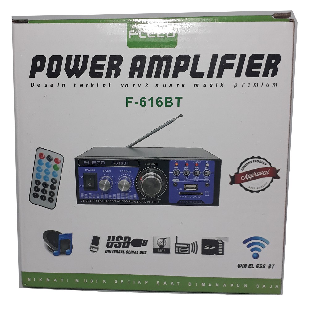 Elektronik > Perangkat Audio & Speaker > Amplifier & Mixer > Amplifier FLECO F-616BT Bluetooth Stereo + Mp3 player + FM Radio AC/DC | Ampli Fleco F 616BT / Fleco F616BT Ampli Mini Murah - Ampliefier Mini Full Power - Amplifier Bluetooth - Amplifier Multifungsi | FMS