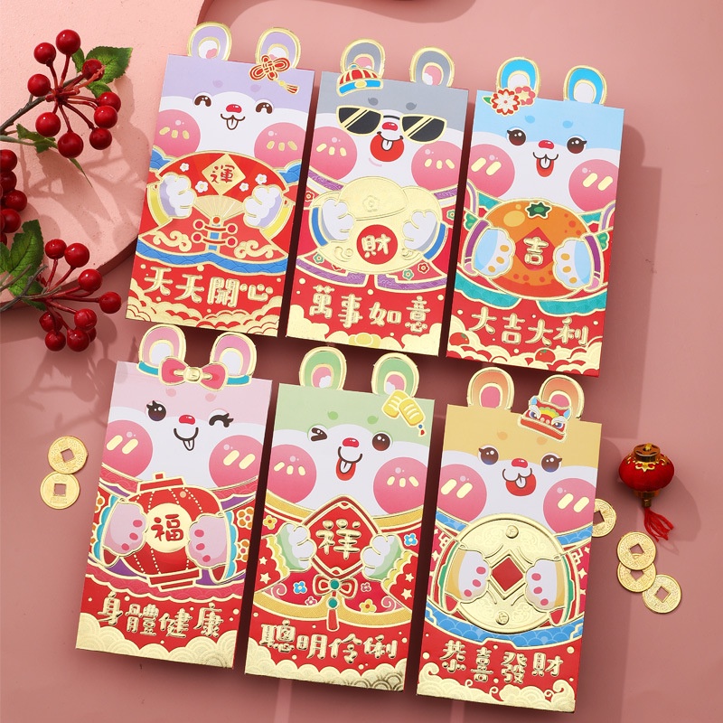 Detail Amplop Angpao Tahun Baru Cina / Imlek Motif Kartun Kelinci Warna Merah