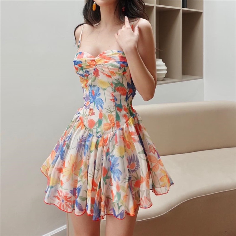 【AMY J】Summer Sexy Floral Off-Shoulder Mini Dress 7413 1.Bahan Import Premium 2.Bahan Bisa Melar Halus Lembut Dan Terlihat Mewah 3. Barang Hasil Produsen Tangan Pertama