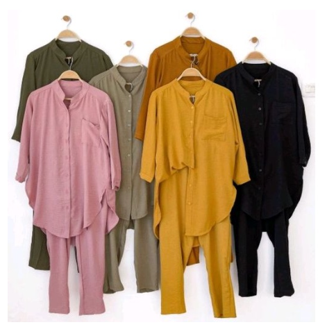 AMY SETELAN CRINKLE AIRFLOW ONE SET KEMEJA POLOS PIYAMA PAJAMAS POLOS TERBARU