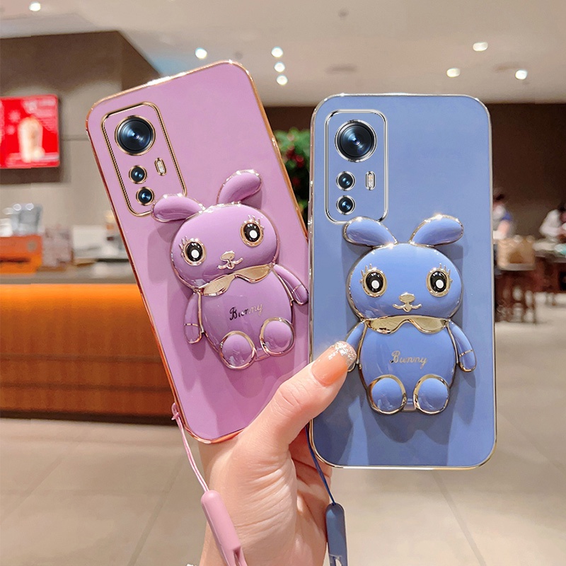 Detail Andyh Case Ponsel Untuk Xiaomi 12x12 Lite Lucu Kartun Kelinci Kecil Tepi Lurus Shell Lembut Mengirim lanyard Silikon
