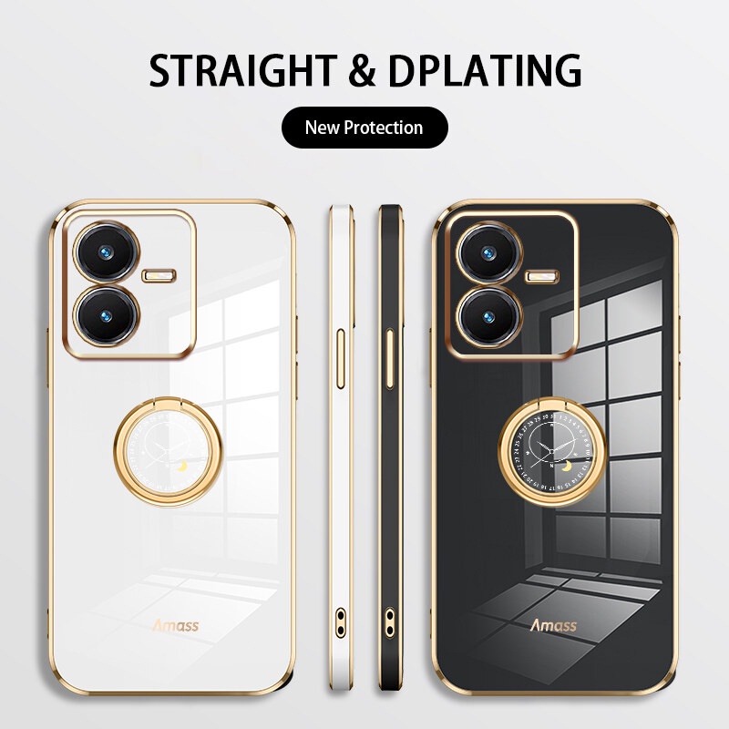 Handphone & Aksesoris > Casing & Skin > Casing & Skin Handphone > Andyh Casing Ponsel Silikon Ultra Tipis Untuk Vivo Y22 Y22S Deluxe Perlindungan Jatuh Pita Emas Dengan Cincin Jam Dan Lanyard Gratis