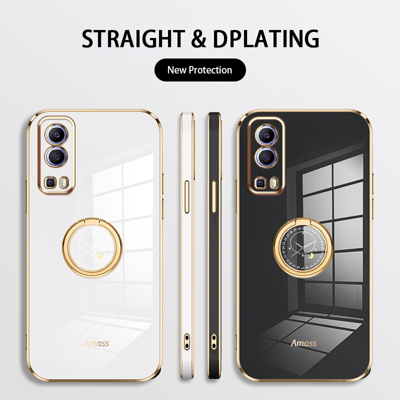 Handphone & Aksesoris > Casing & Skin > Casing & Skin Handphone > Andyh Casing Ponsel Silikon Ultra Tipis Untuk Vivo Y72 Y52 5G V2041 V2053 Deluxe Perlindungan Jatuh Band Emas Dengan Cincin Jam Dan Lanyard Gratis
