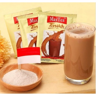 * Teh Tarik Jenis minuman teh tarik instan dari MaxTea yang telah lama dipasarkan dengan kualitas rasa yang tidak pernah berubah. Aroma dan rasa yang pas, perpaduan antara rasa teh, susu, krimer dan gula dengan sedikit buih di atasnya, diakui paling nikmat. Bisa dinikmati panas atau dingin sesuai selera. Komposisi: Gula, krimer, susu skim bubuk, teh instan mengandung alergen