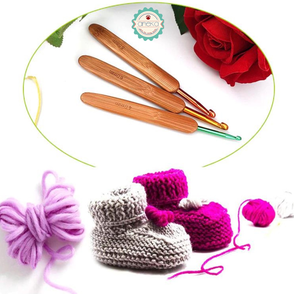 Detail AnekaBenang - Hakpen Gagang Bambu Gold / Multicolor set