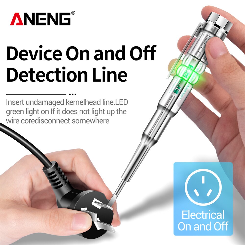 Memeriksa aliran listrik tidak bisa dilakukan sembarangan. Anda dapat melakukan pemeriksaan dengan aman menggunakan obeng tespen B13 dari Aneng yang dilengkapi dua lampu indikator. Lampu indikator akan menyala atau mati tergantung dari ada tidaknya aliran listrik. Anda pun dapat dengan aman mengetahui titik breakpoint dari kabel listrik yang putus.