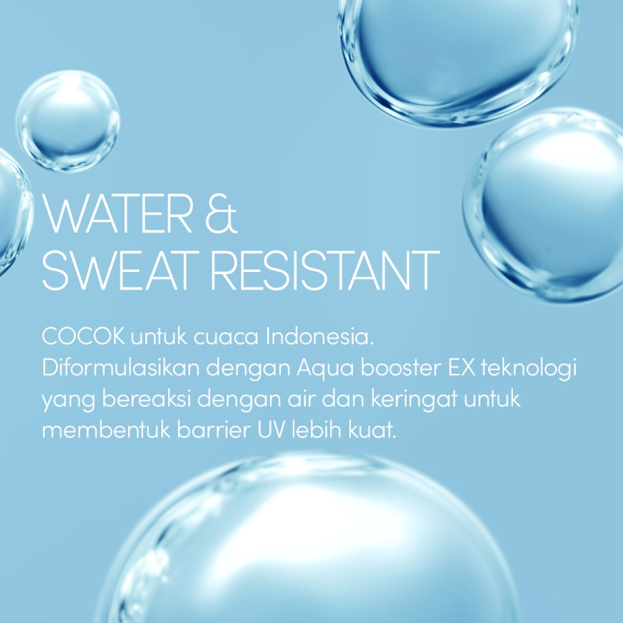 UV sunscreen berbahan gel yang sangat nyaman digunakan pada kulit diformulasikan khusus untuk kulit sensitive, dan hasil akhir dewy dan lebih menghidrasi kulit. Cocok digunakan oleh pemilik kulit kering untuk berikan tampilan fresh pada wajah. Diformulasikan dengan Double Defense Technology Aqua EX Booster Technology - Memberikan perlindungan yang semakin kuat dan merata pada kulit, ketika kulit terpapar oleh air ataupun keringat Super Waterproof Formula - super waterproof sehingga perlindungan sunscreen tidak akan luntur ketika kulit terpapar air ataupun keringat Melindungi kulit dari mikro partikel / polusi di udara dengan environmental damage block measures Dapat digunakan sebagai primer makeup Mudah dibilas dengan sabun.