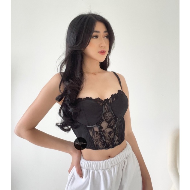 Kelengkapan : Bustier & Thong Bahan : Satin + Renda