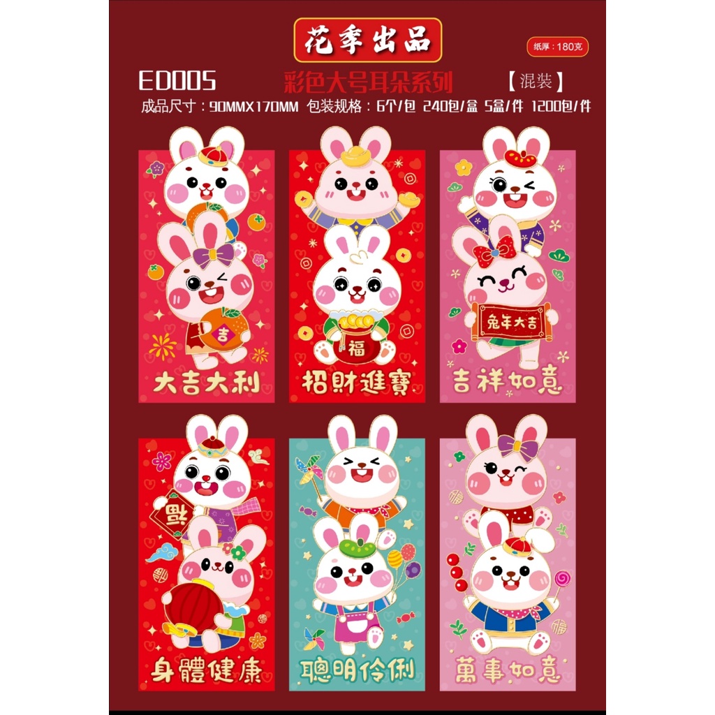 Angpao imlek panjang shio KELINCI 2023 murah meriah 3D, ADA TANDUUKNYA 1 pack sudah isi 6 mix seperti foto Bahan tebal, tidak mudah koyak tulisan dan gambar timbul Jumlah isi sesuai gambar Ready stock, bisa digojekin jg! uk 9x16.3 cm