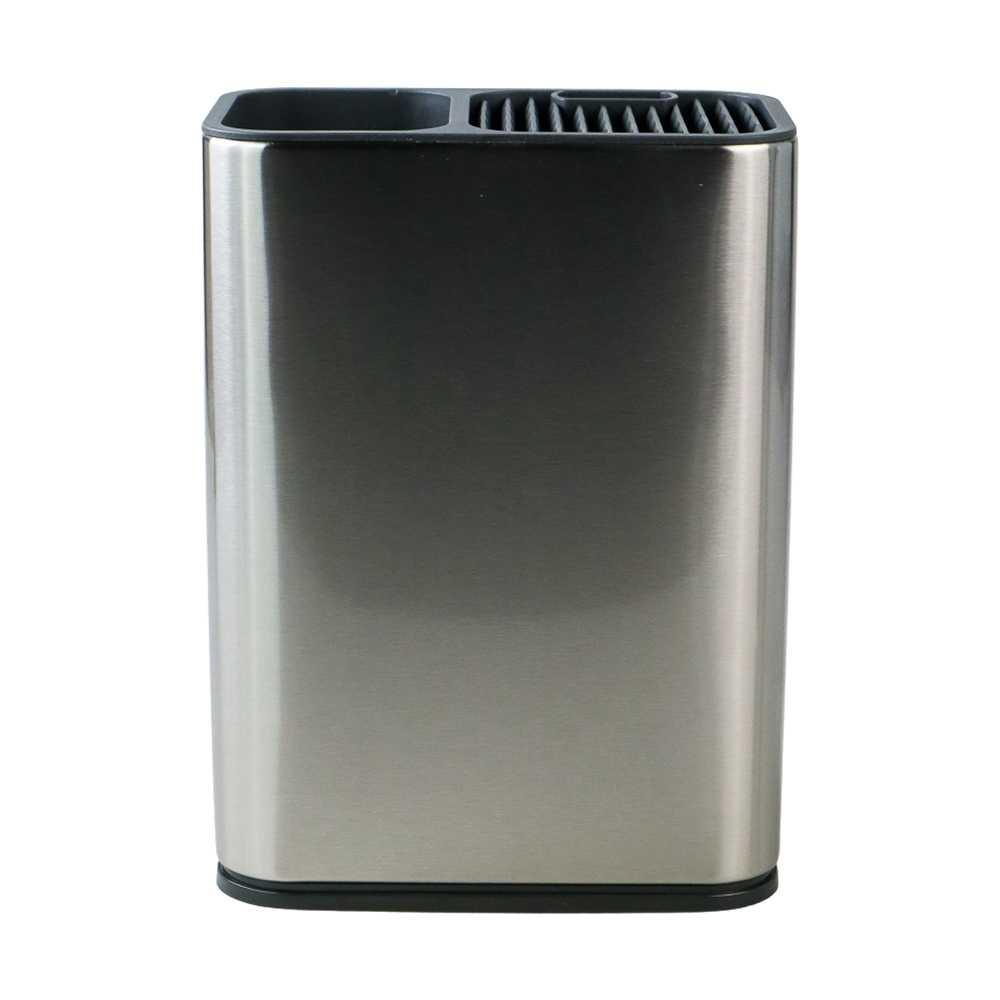 Bahan Berkualitas Tempat pisau dapur berbahan plastik pada bagian dalam dengan lapisan stainless steel yang kuat pada bagian luar. Dengan begitu, koleksi pisau Anda akan awet karena terhindar dari berbagai goresan.