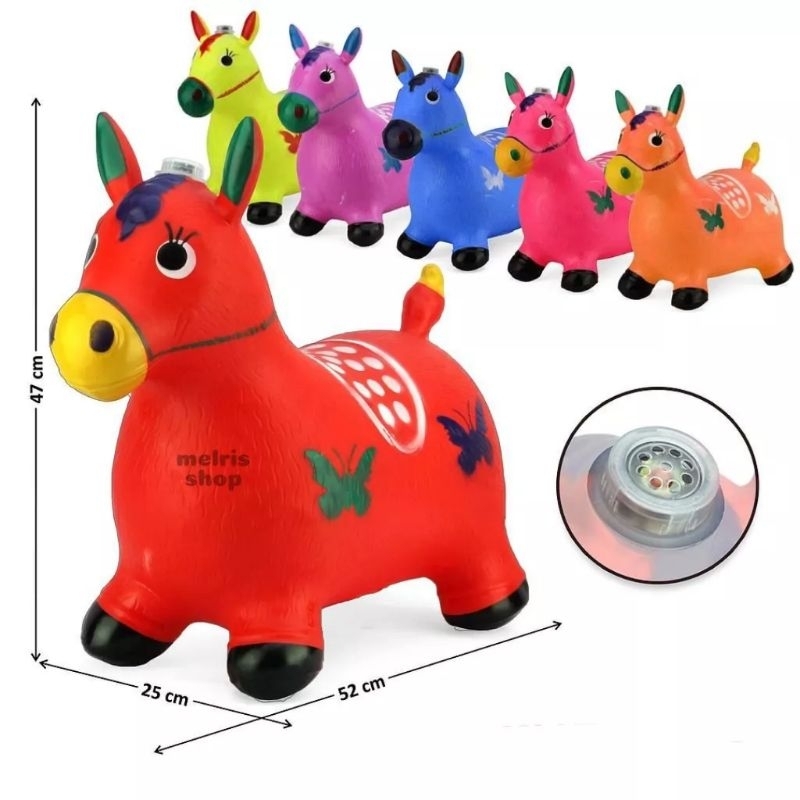 Cara Penggunaan Mainan: Pompa Balon Boneka Kuda Kudaan dari bagian bawah menggunakan pompa angin biasa. Buka Speaker musik pada bagian kepala boneka dengan cara memutarkannya melawan arah jarum jam (ke kiri) sampai terlepas. Tarik kertas kecil penyegel baterai pada speaker, kemudian pasang kembali pada kepala boneka. Mainan siap dimainkan, Enjoy