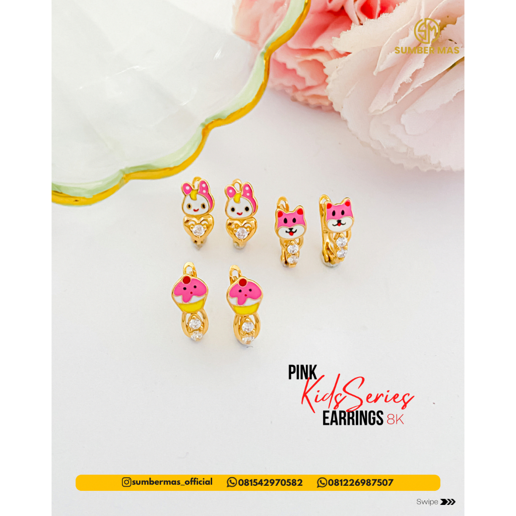 Nama Barang : ANIMALS KIDS SERIES EARRINGS Berat : 1gr - 1.1gr Ukuran : KIDS SERIES Variasi : GOLD Kadar Emas : 8K (375) Keuntungan Membeli Perhiasan di Toko Emas Sumber Mas