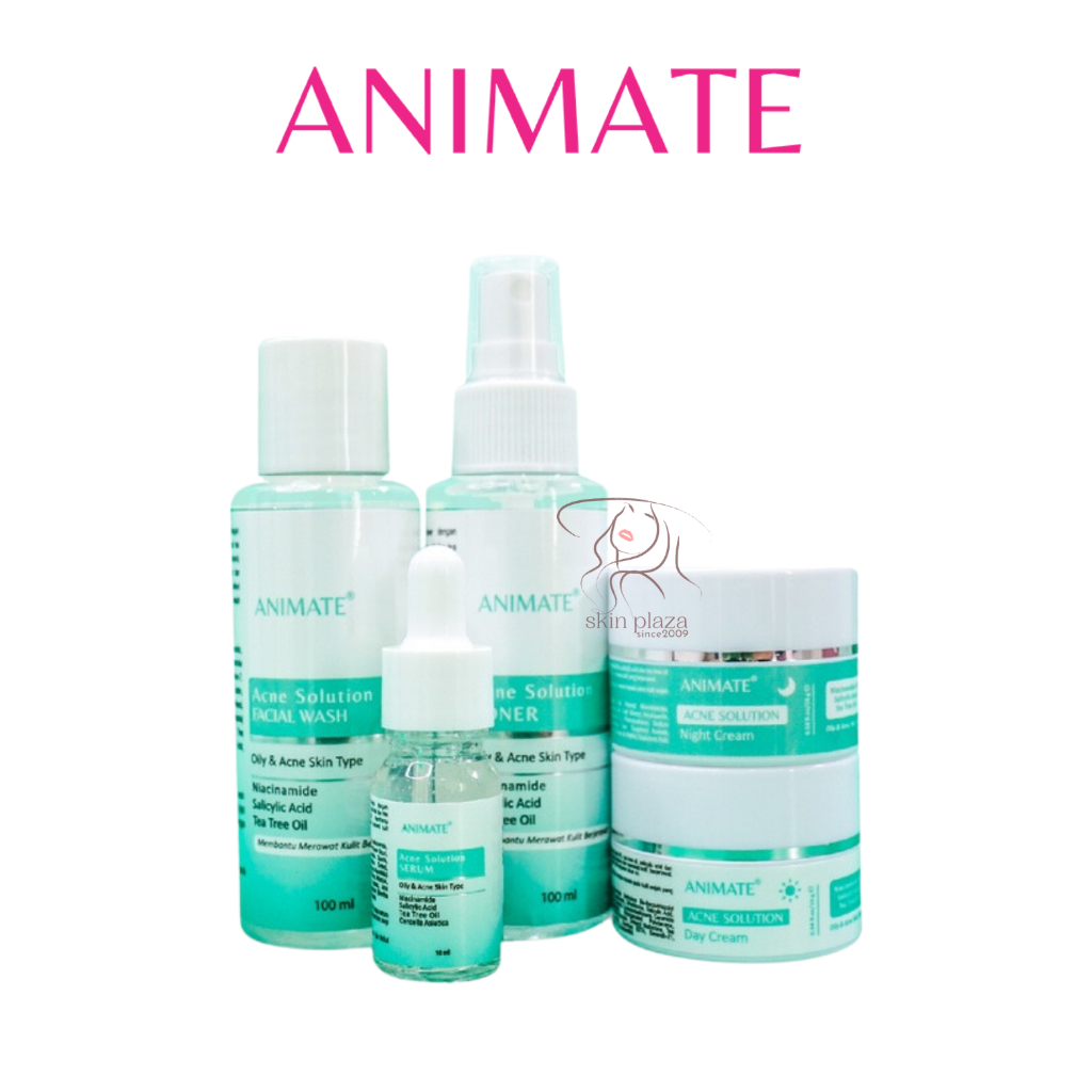 ANIMATE Acne Solution Series 5in1 Terdiri dari: - Acne Solution Facial Wash (NA18221201732) - Acne Solution Toner (NA18221201733) - Acne Solution Day Cream (NA18220105861) - Acne Solution Night Cream (NA18220105860) - Acne Solution Serum (NA18220103875)