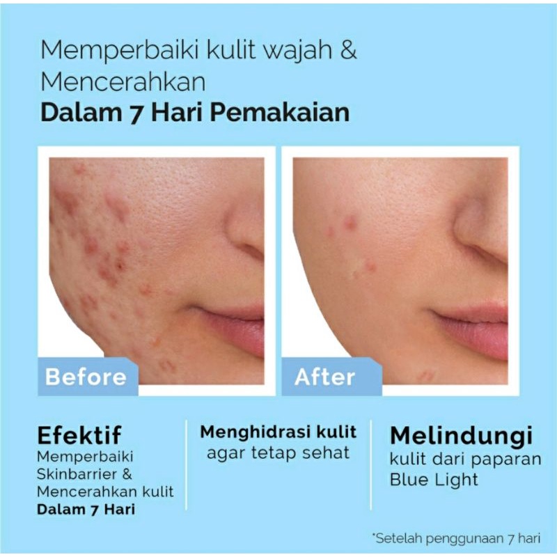 1. Rangkaian produk yang dapat merawat dan memperbaiki skin barrier, serta membantu meratakan warna kulit sehingga kulit tampak lebih cerah dalam 7 hari pemakaian.
