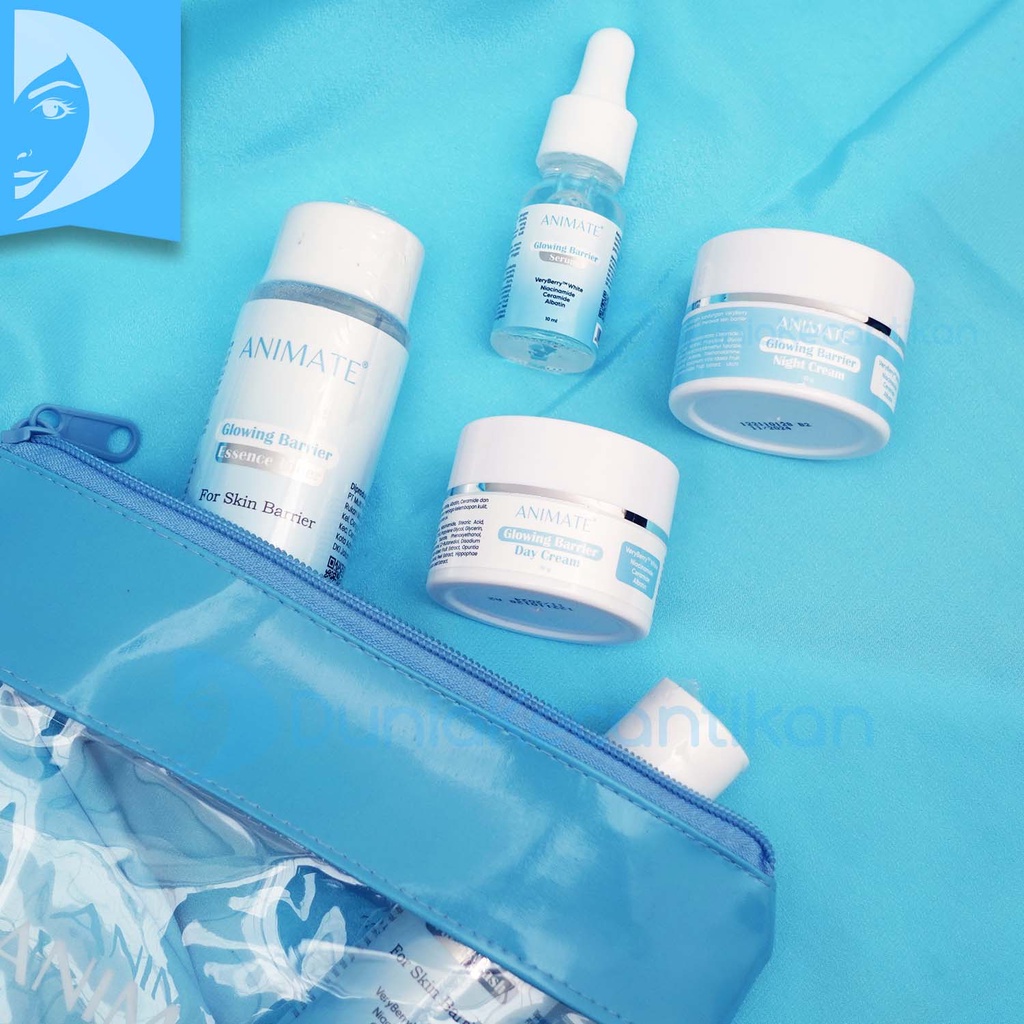 Manfaat : 1. Rangkaian produk yang dapat merawat dan memperbaiki skin barrier, serta membantu meratakan warna kulit sehingga kulit tampak lebih cerah dalam 7 hari pemakaian. 2. Mengandung Veryberry White yang dikombinasi dengan Niacinamide dan Albatin yang bekerja sebagai brightening active sehingga dapat mencerahkan kulit secara maksimal 3. Mengandung Ceramide yang dapat merawat dan memperbaiki lapisan kulit serta menghidrasi kulit agar tetap sehat 4. Dapat melindungi kulit dari paparan Blue Light yang dihasilkan oleh gadget serta paparan polusi dari lingkungan 5. Dengan formulasi yang ringan sehingga bahan aktif bisa dengan mudah meresap kedalam kulit 6. Animate Glowing Barrier Facial Wash dibuat dengan mild surfaktan agar dapat membersihkan wajah dengan busa yang lembut dan tidak merusak kulit 7. Animate Glowing Barrier Essence Toner yang dapat menyegarkan kulit dengan menyeimbangkan pH kulit serta memperkuat skin barrier dan juga melindungi kulit agar kulit tampak lebih glowing 8. Animate Glowing Barrier Day Cream mengandung uv filter yang dapat melindungi kulit dari paparan sinar matahari serta memberikan efek tone up (level medium) tanpa membuat kulit menjadi ashy (keabu-abuan)