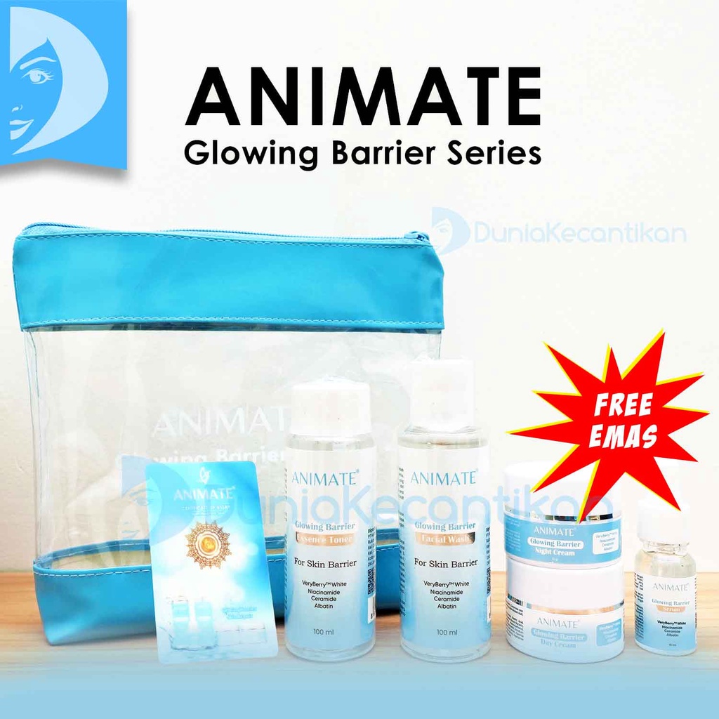 Animate Glowing Barrier Series Adalah rangkaian perawatan kulit yang terdiri dari lima produk yaitu : 1. Animate Glowing Barrier Facial Wash = NO BPOM NA18221205856 2. Animate Glowing Barrier Essence Toner = NO BPOM NA18221205858 3. Animate Glowing Barrier Serum = NO BPOM NA18221902726 4. Animate Glowing Barrier Day Cream dan, = NO BPOM NA18220108940 5. Animate Glowing Barrier Night Cream = NO BPOM NA18220108923