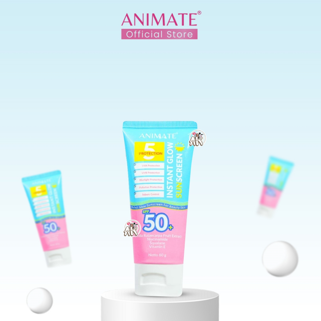 Cara Pemakaian : ● Pastikan wajah dalam keadaan bersih dan siap untuk menyerap skincare ● Oleskan Animate Instant Glow Sunscreen 5 Protection ke seluruh area wajah hingga leher secara merata ● Biarkan hingga meresap, lalu bisa lanjutkan tahapan skincare lainnya