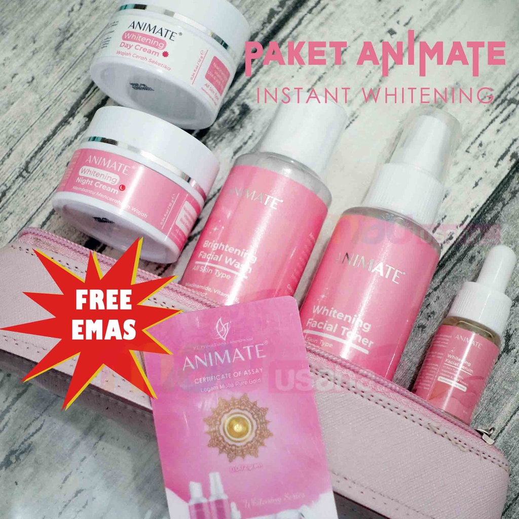 Animate Instant Whitening Series 5in1 merupakan rangkaian produk skincare lokal yang mampu mencerahkan wajah dalam waktu 7 hari. Rangkaian produk Animate Instant Whitening Series 5in1 terdiri Whitening Day Cream, Whitening Night cream, Brightening Facial Wash, Whitening Facial Toner, dan Whitening Facial Serum. Rangkaian ini diformulasikan secara khusus dengan bahan aktif yang aman, teruji secara dermatologis, BPOM, serta HALAL sehingga dapat membuat kulit cerah seketika, sehat dan ternutrisi.