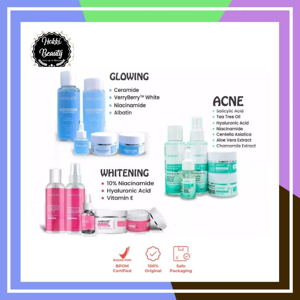 Detail ANIMATE Whitening / Glowing Barrier Series 5in1 / Acne Solution Series 5in1 - Paket Skincare Original BPOM