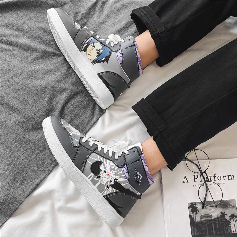 Detail Anime Naruto Klasik Modern Sepatu Pria Jogging Sneaker Tinggi Uchiha Sasuke Cosplay Sports Lentur Cowok Dewasa Keren 214