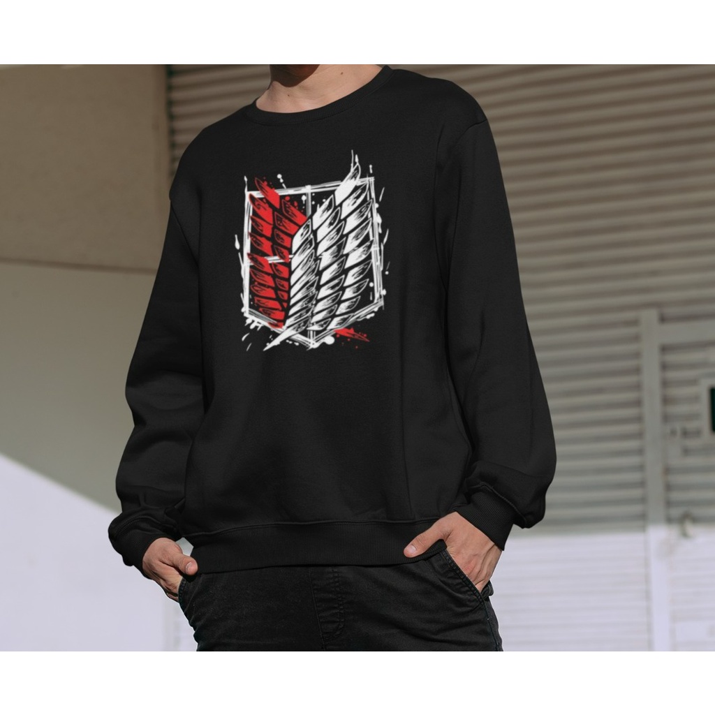 Detail ANIME SWEATER UNISEX OVERSIZE RED WINGS AOT PREMIUM SIZE M TO XXL FLEECE TEBAL HALUS TERBARU'