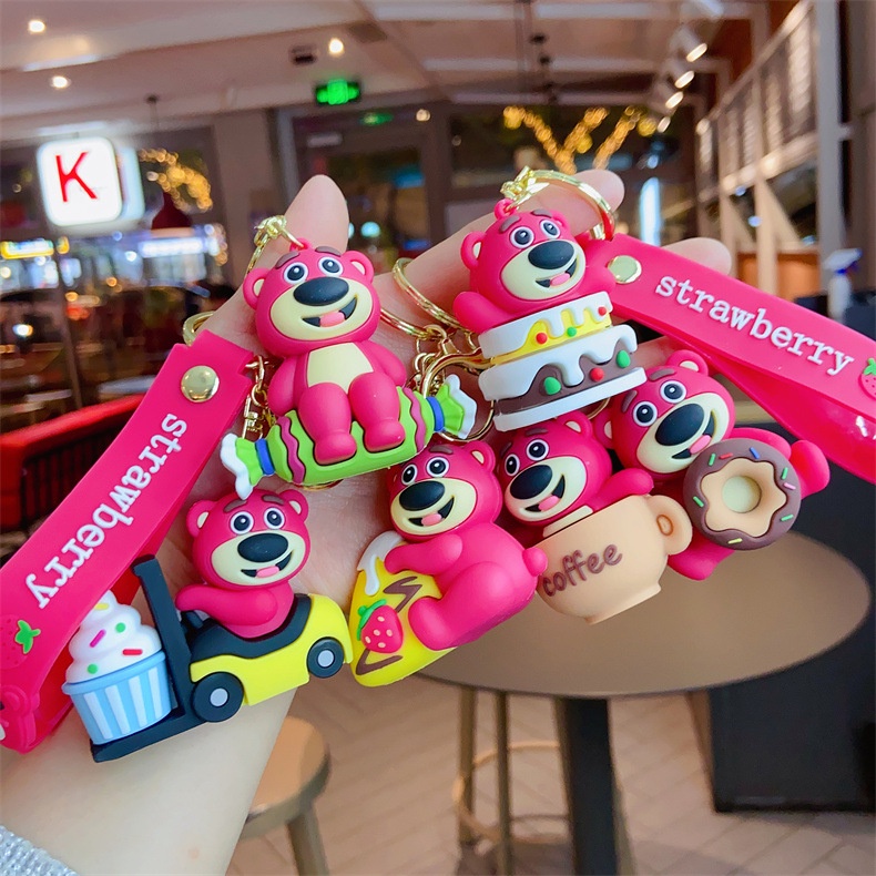 Detail Anime Toy Story Beruang Strawberry Lucu Gantungan Kunci Liontin Aksesoris Mobil Gantungan Kunci Mainan Keychain