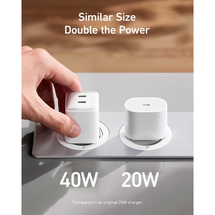 Ukuran Kecil, Kekuatan Besar 44% lebih kecil dari 2 pengisi daya iPhone 20W asli yang disatukan, tetapi dengan daya yang sama besarnya. (Catatan: Ini bukan pengisi daya yang dapat dilipat)