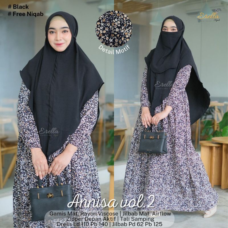 Detail ANNISA Vol.2.3 SYARI SET ORI ERELLA | Set Gamis+Khimar