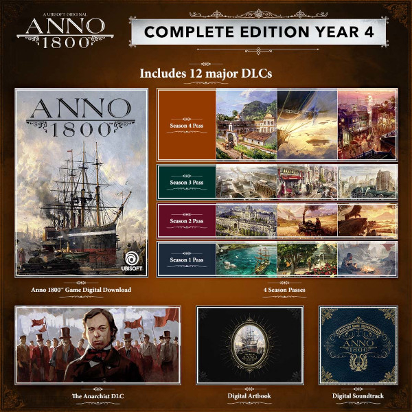 ๐๐ ๐๐ซ๐ข๐ ๐ข๐ง๐๐ฅ ๐๐ง๐ง๐จ ๐๐๐๐ ๐๐๐๐ซ ๐ ๐๐จ๐ฆ๐ฉ๐ฅ๐๐ญ๐ ๐๐๐ข๐ญ๐ข๐จ๐ง Includes Complete Game and All DLC's : ๐พ Season 1 Pass with three DLCs: Sunken Treasures, Botanica, and The Passage. ๐พ Season 2 Pass with three DLCs: Seat of Power, Bright Harvest, and Land of Lions. ๐พ Season 3 Pass with three DLCs: Docklands, Tourist Season, and The High Life. ๐พ Season 4 Pass, which includes the next three DLCs: Seeds of Change, Empire of the Skies, and New World Rising. ๐พ The Deluxe Pack, including the Anarchist AI character, the soundtrack, a digital art book, and more.