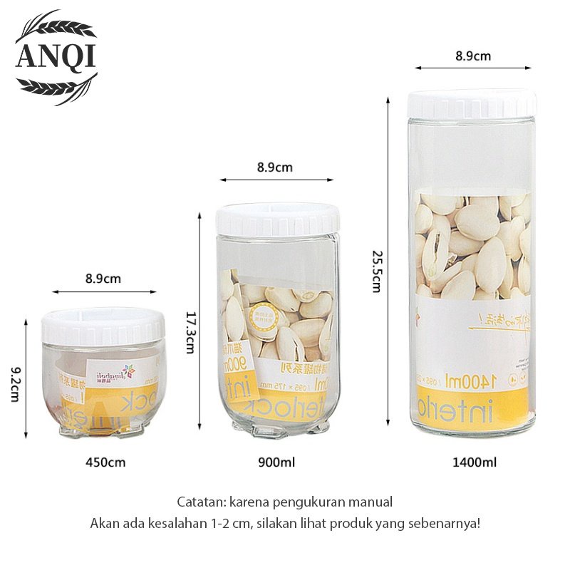 Detail ANQI 1888 4IN1 Stoples Kaca / Toples Kotak Snack Kedap Udara Penyimpanan Bening Cereal Kontainer Makanan Food Storage Jar Container