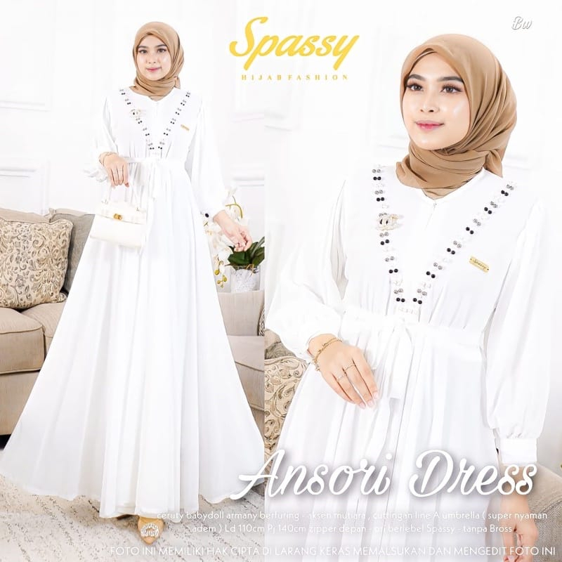 Video perkenalan produk Ansori Dress Kondangan Sage Gamis Wanita Kekinian Busui Friendly Gaun Pesta Muslimah Ceruty Babydoll Aksen Mutiara Baju Wanita Jumbo. Sumber: Shopee.
