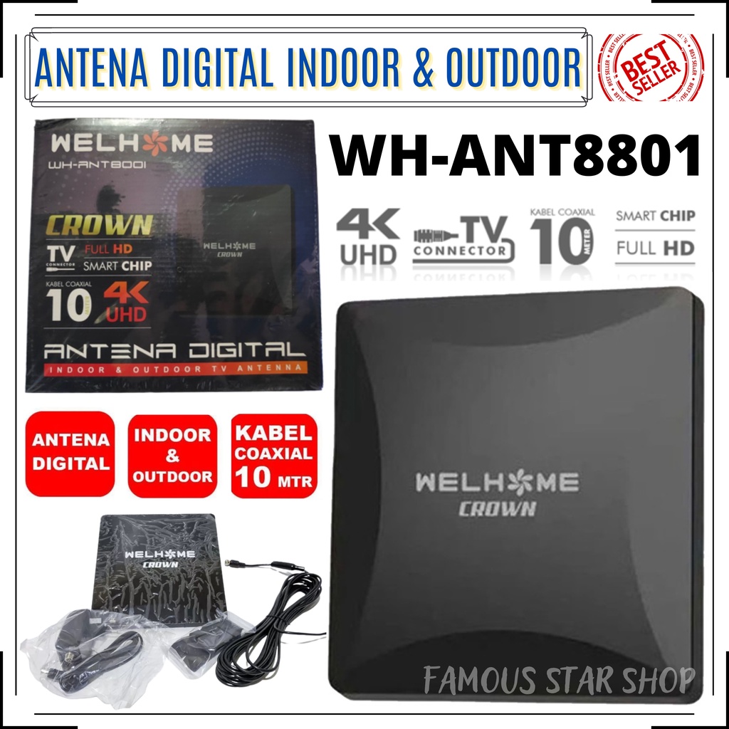 Elektronik > TV & Aksesoris > Antena TV > Antena Digital TV Semua Siaran Indoor & Outdoor Welhome WH-ANT8001 | Welhome WH-ANT8001 Antena TV Super Jernih Full HD | Antena Digital Analog Dalam Dan Luar Ruangan Kabel 10 Meter antena tv digital /antena digital tv semua siaran | FMS