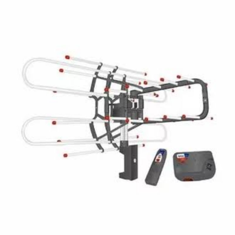 Antena Remote / Remot/ Outdoor / booster TRISONIC T-850 - Dilengkapi derngan remote control untuk mempermudah memindahkan arah antena sesuai keinginan - Dilengkapi dengan booster dan kabel 3C Coaxial 10 meter - Remote Controlled Rotating Antenna dapat menangkap siaran jarak jauh dengan tingkat gangguan rendah - Terbuat dari material berkualitas dan tahan lama