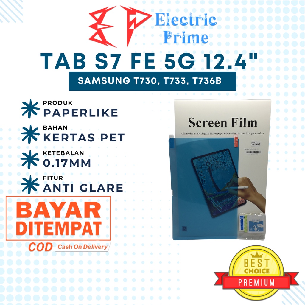 Detail Anti Gores Film Samsung Galaxy Tab S7 FE 12.4 5G 2021 SM-T730 T733 T736B TRIPLEDI Paper Like Protector