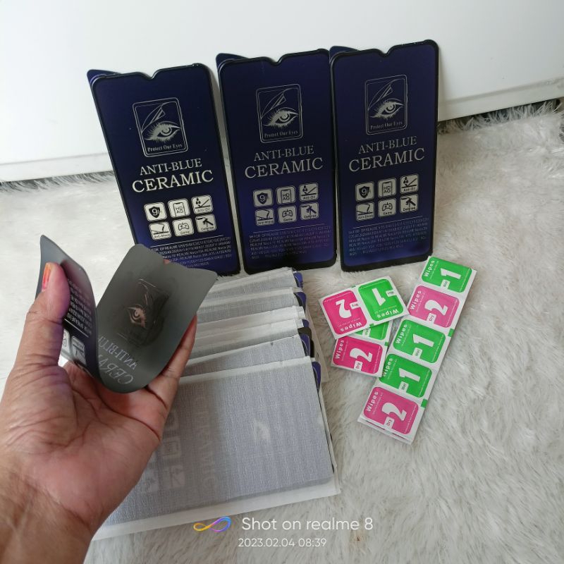 Anti gores berbahan ceramic yang anti pecah dilapisi lapisan Green light (Anti Radiasi) + Matte (Anti oil/Anti minyak)