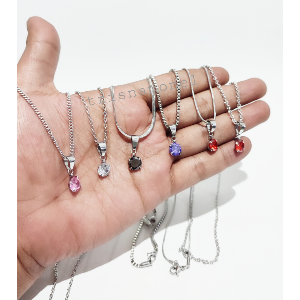 Detail ANTI KARAT !!! kalung titanium liontin diamond motif bulat