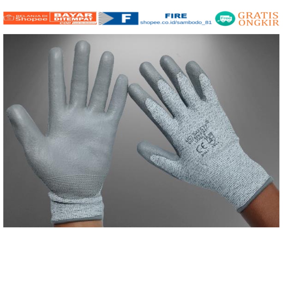 Anti Sayat Cut Resistant safety Gloves Anti Benda Tajam Anti Pisau Potong Anti Gores Hand Gloves Anti Licin Anti Slip Anti Iris Merupakan sarung tangan safety dengan bahan dasar nylon HPPE, yang dilapisi karet polyurethane pada telapak tangan dan ujung jari.