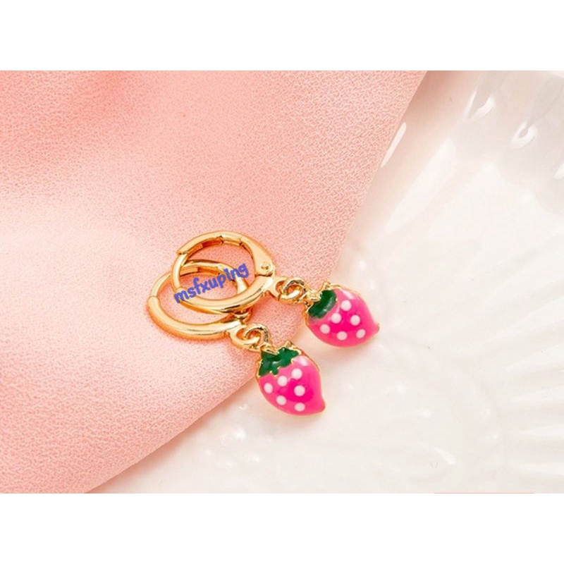 Anting Anak perempuan Lucu Imut Motif Stroubery Pink Perhiasan Fashion Import Kualitas