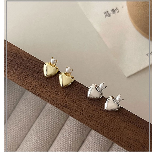 Detail Anting-anting mutiara berbentuk hati antik Prancis