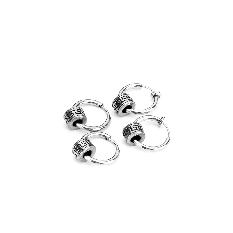 Detail Anting Baja Titanium Pria High-End Kepribadian Anting Tahun Gaya Baru Trendi Tunggal Ruffian Tampan Gesper Telinga Anting Palsu Pria