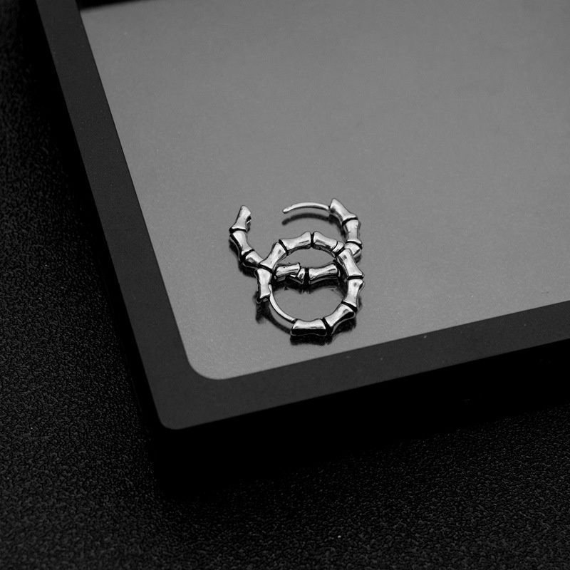 Detail Anting Baja Titanium Retro Anting Tulang Unik Pria Wanita Unisex Gaya Anting Bambu Anting Punk Gelap
