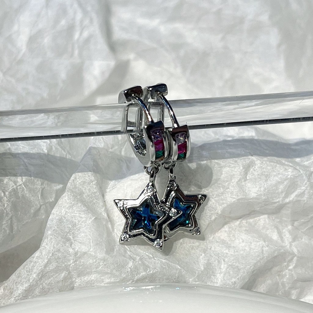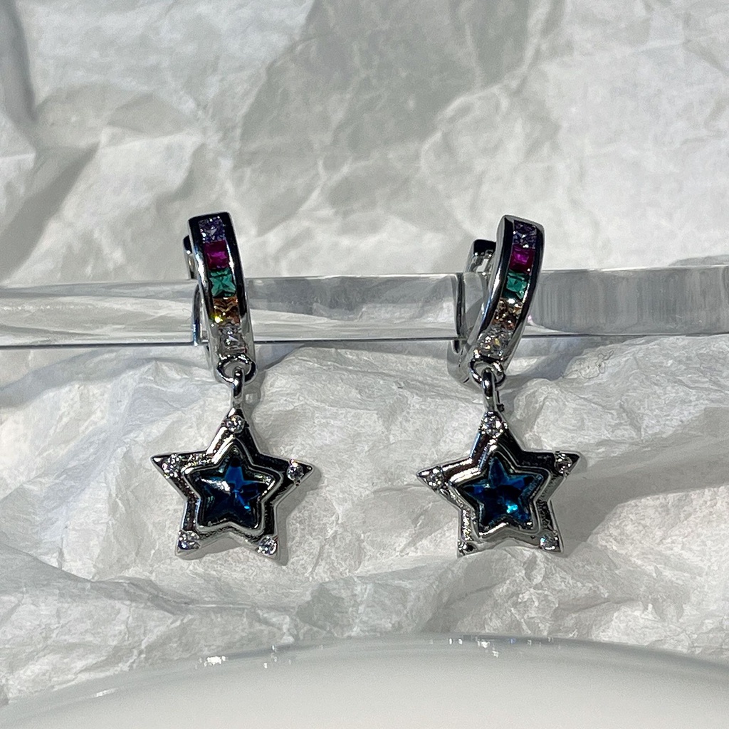 Detail Anting Batu Putih Bintang Berujung Lima Biru Warna-Warni Indah Temperamen Sederhana Aksesoris Telinga