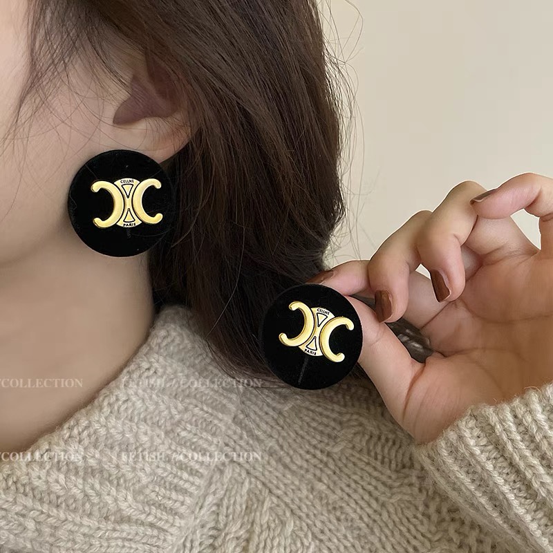 Detail Anting Bentuk Bulat Motif Tulisan Warna Hitam Gaya Retro Untuk Wanita