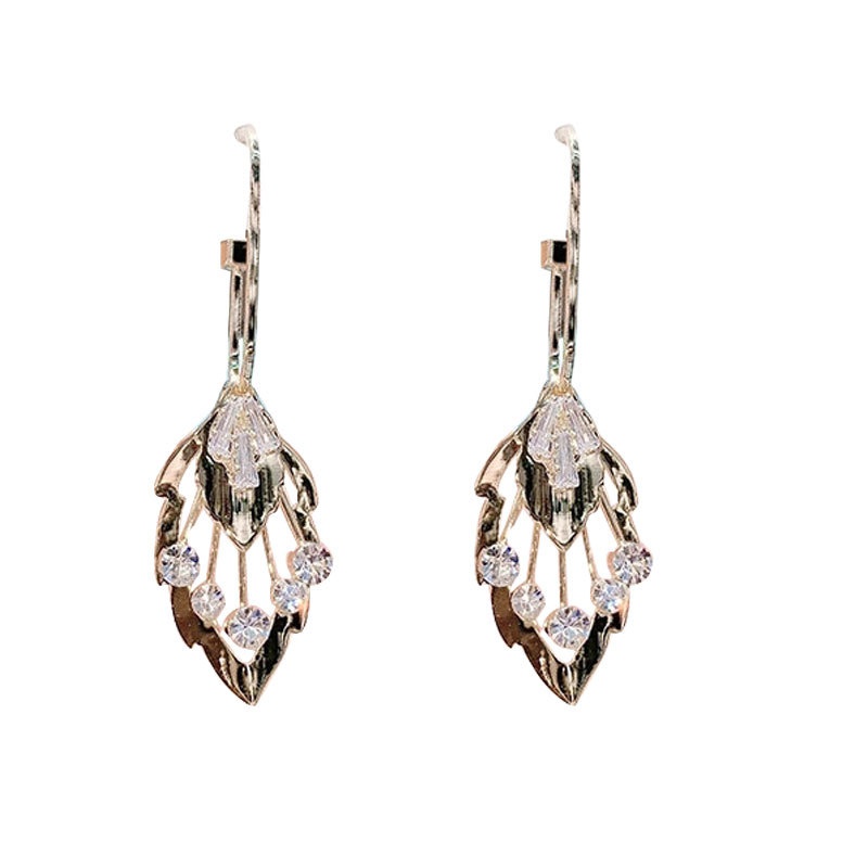 Detail Anting Bentuk Daun Geometris Multilayer Bahan Zirkon Untuk Wanita