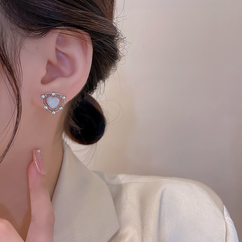 Detail Anting Bentuk Hati Bahan Zirkon Untuk Aksesoris