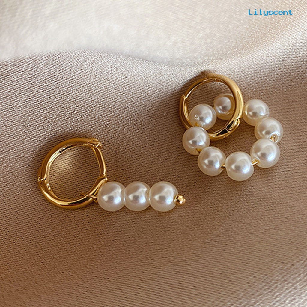 Detail Anting Bentuk Lingkaran Ganda Asimetris Aksen Mutiara Tiruan Warna Emas Untuk Pemakaian Sehari-Hari