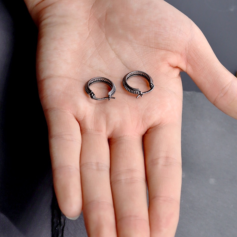 Detail Anting Bentuk Lingkaran Warna Hitam Bahan Tembaga Anti Alergi Gaya Retro Untuk Pria Dan Wanita